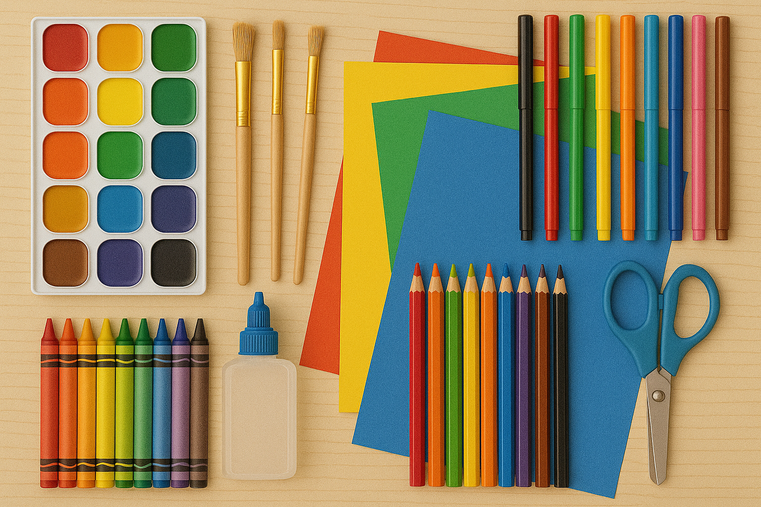 🎨 Art Supplies – Crayons, paints, markers, and coloring sets for little artists.